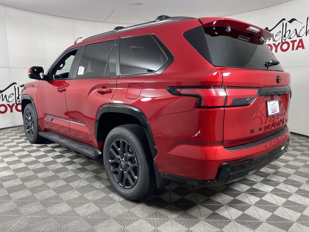 2026 Toyota Sequoia Platinum Red V6 Hybrid, 10-Speed Automatic, 4WD.